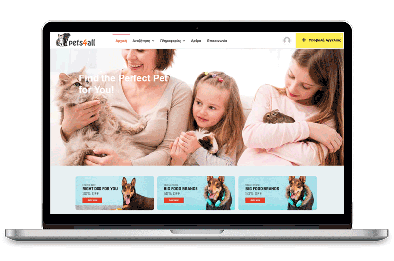 Μεγάλο banner στην αρχική σελίδα του pets4all.gr